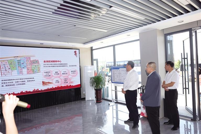 与会人员在土左旗金浩区域服务中心悠乐城社区了解基层治理情况。