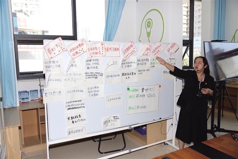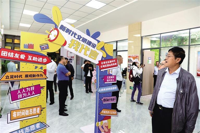 展板上张贴的俪城社区在基层治理中收集到的群众建议。
