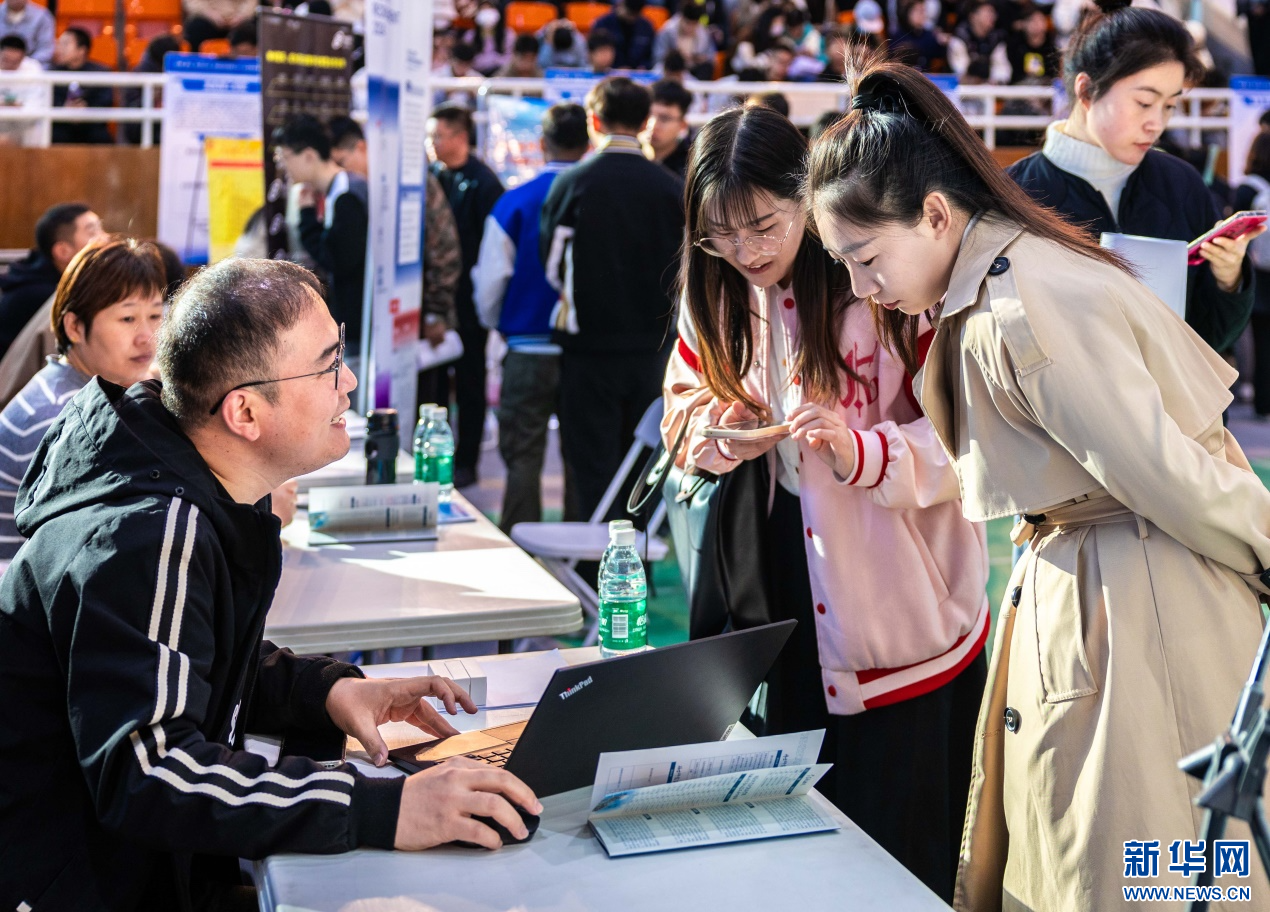10月15日,求职者在内蒙古自治区秋季校园招聘活动现场了解招聘信息。新华网发(丁根厚 摄)