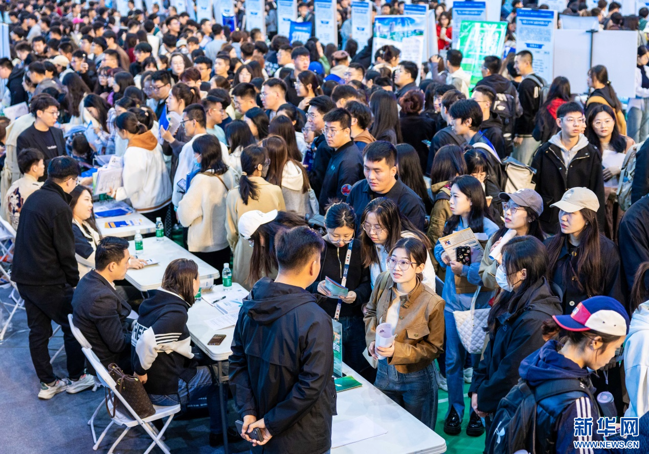 10月15日,众多求职者在内蒙古自治区秋季校园招聘活动现场寻找合适的岗位。新华网发(丁根厚 摄)