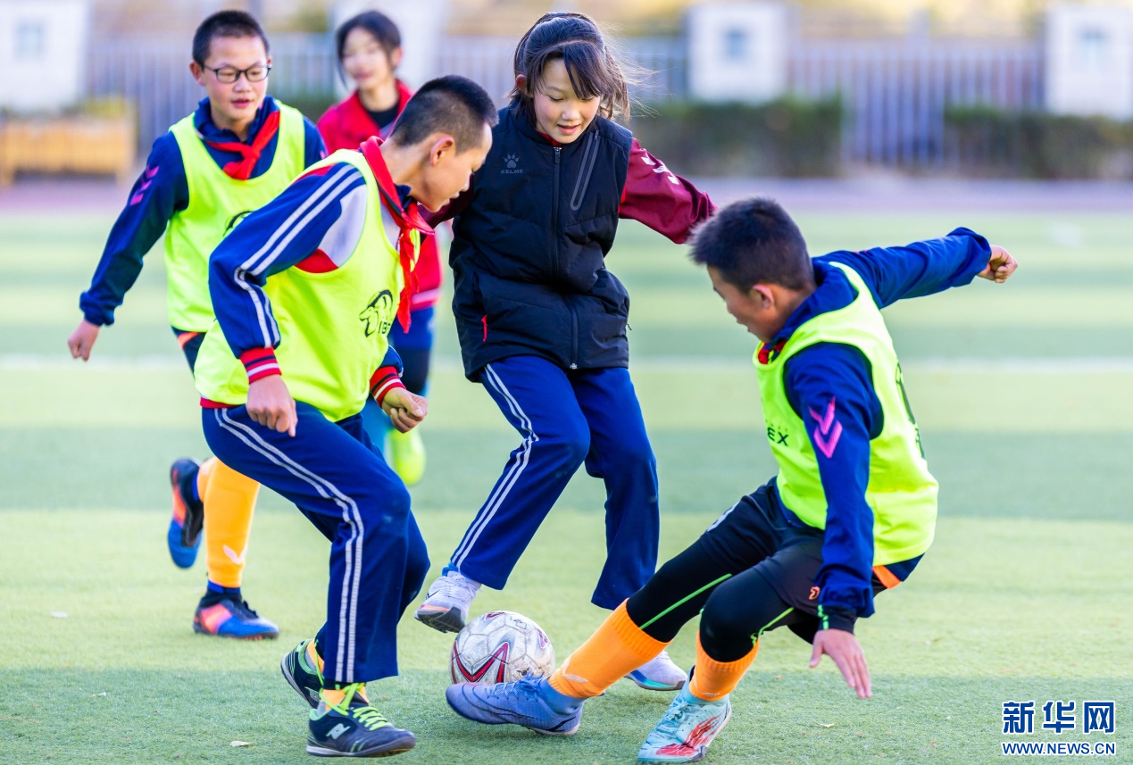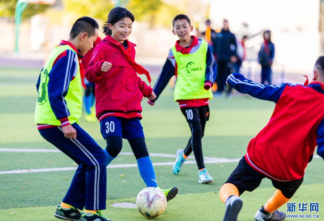 11月6日,呼和浩特市玉泉区石东路小学学生在进行足球分组对抗赛。新华网发(丁根厚 摄)