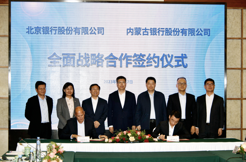 北京银行与内蒙古银行举行全面战略合作签约仪式(企业供图)