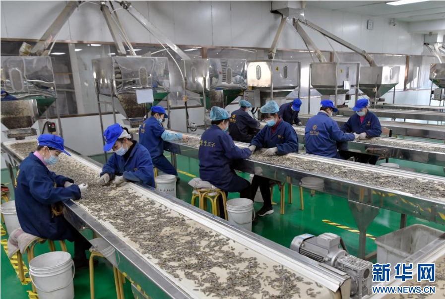 记者在作为全国知名瓜子集散地的五原县鸿鼎农贸市场走访发现,各家商贸企业正开足马力筛选、加工瓜子,经过去石、分级、色选等多道工序后,一颗颗饱满、鲜亮的瓜子分装入库。三瑞农科公司总经理助理段东宏说:“现在正是我们收购、加工瓜子的高峰期,预计收购量2万吨以上。我们通过发展订单农业,建立起稳固的‘公司+合作社+农户’的经营模式,实现种业研发、收储、加工、销售全产业链发展,直接带动1万多户农户增产增收。”