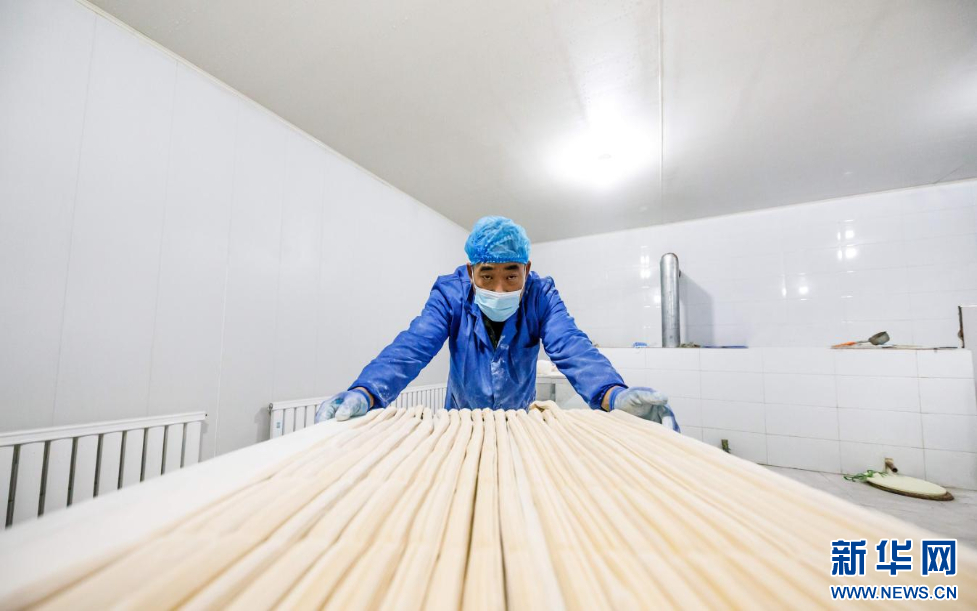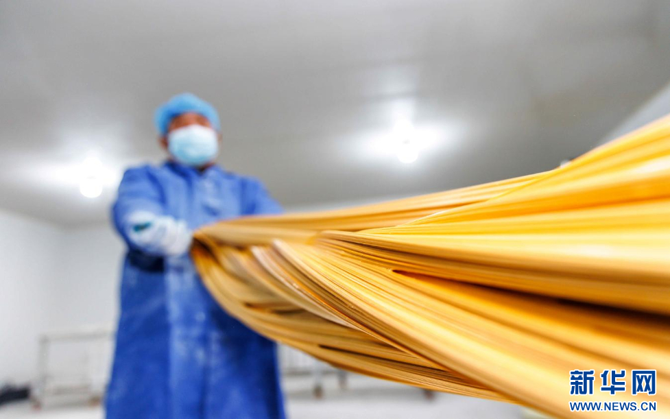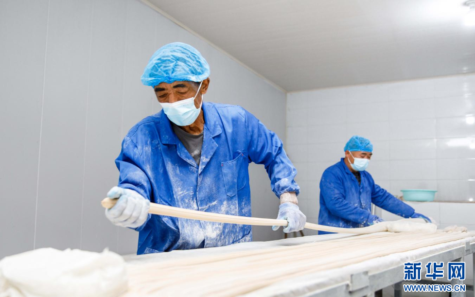 麻糖在工人不断叠拉过程中变得层次分明。新华网发(乌力更 摄)