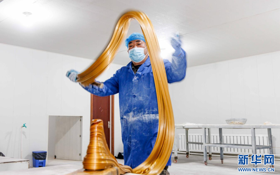 工人正在不断地“拉糖”,这一过程极具观赏性。新华网发(乌力更 摄)