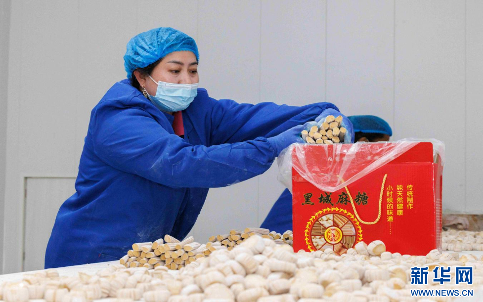 初冬时节,内蒙古自治区呼和浩特市托克托县新营子镇生产的非遗美食麻糖迎来产销两旺的时节。