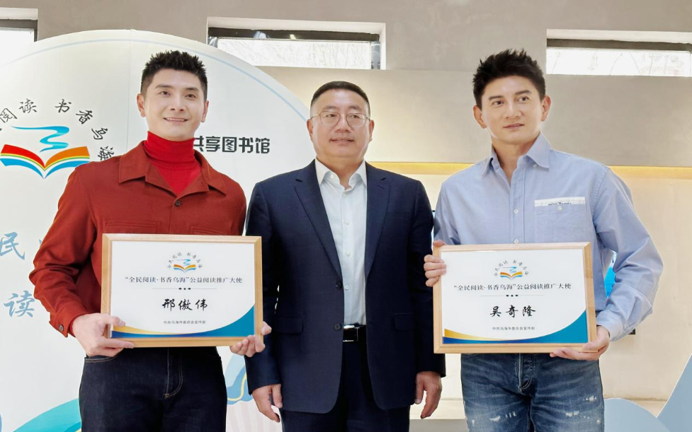 授牌仪式上,孟培云为“全民阅读·书香乌海”公益阅读推广大使、著名影视演员吴奇隆和奥运体操冠军邢傲伟授牌,时兴书屋创办人介绍了阅读推广历程。