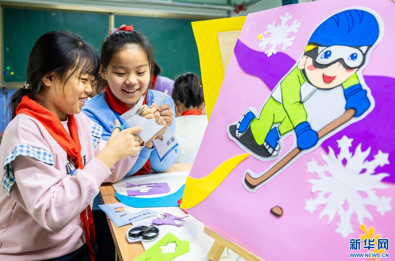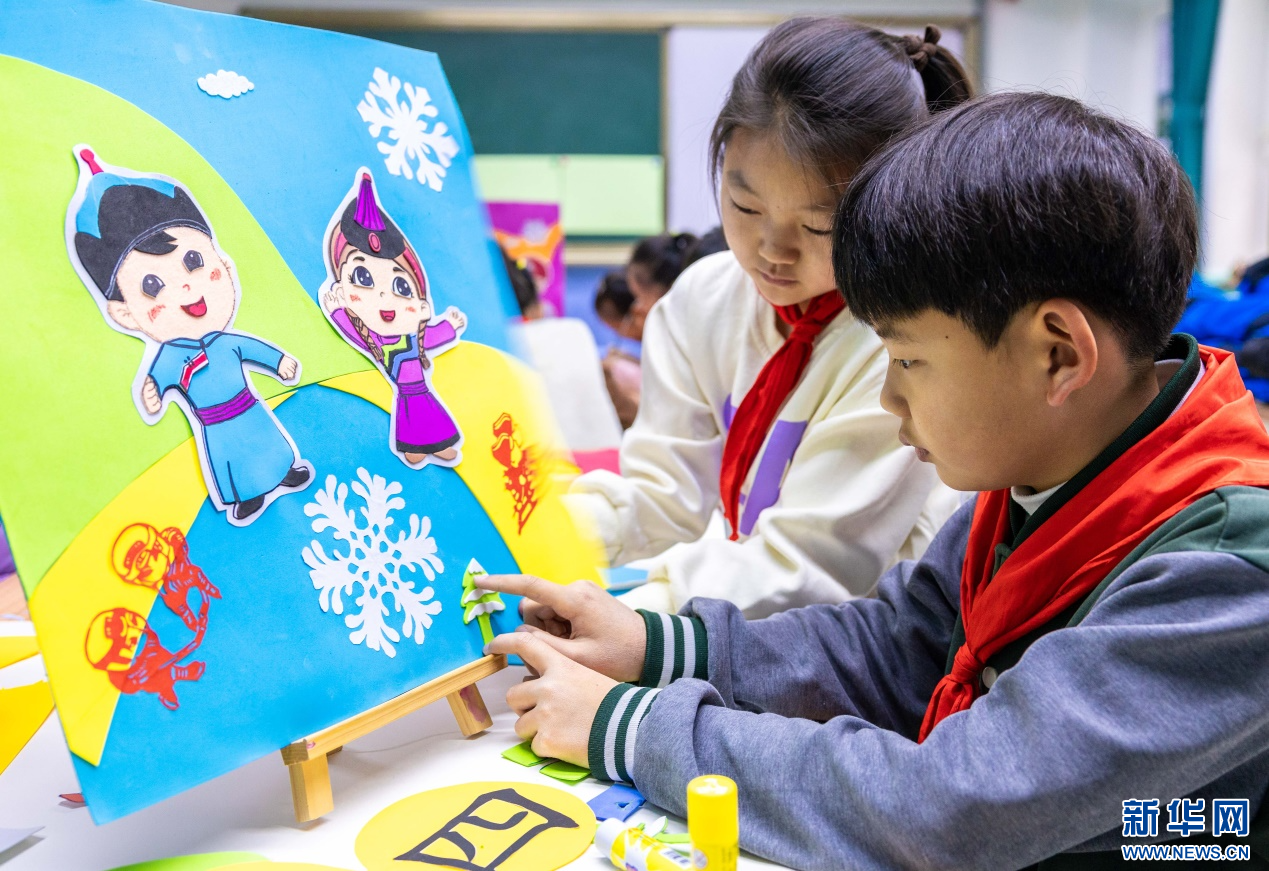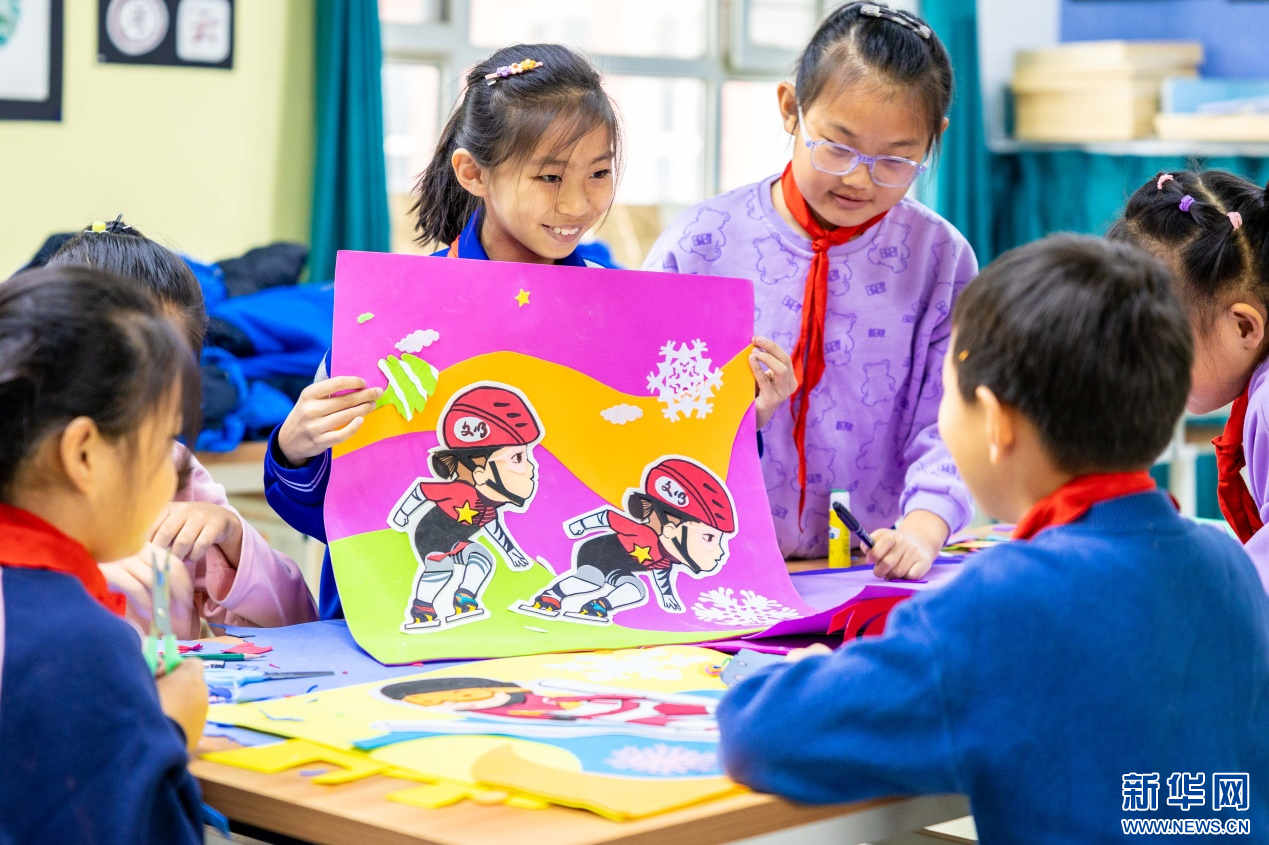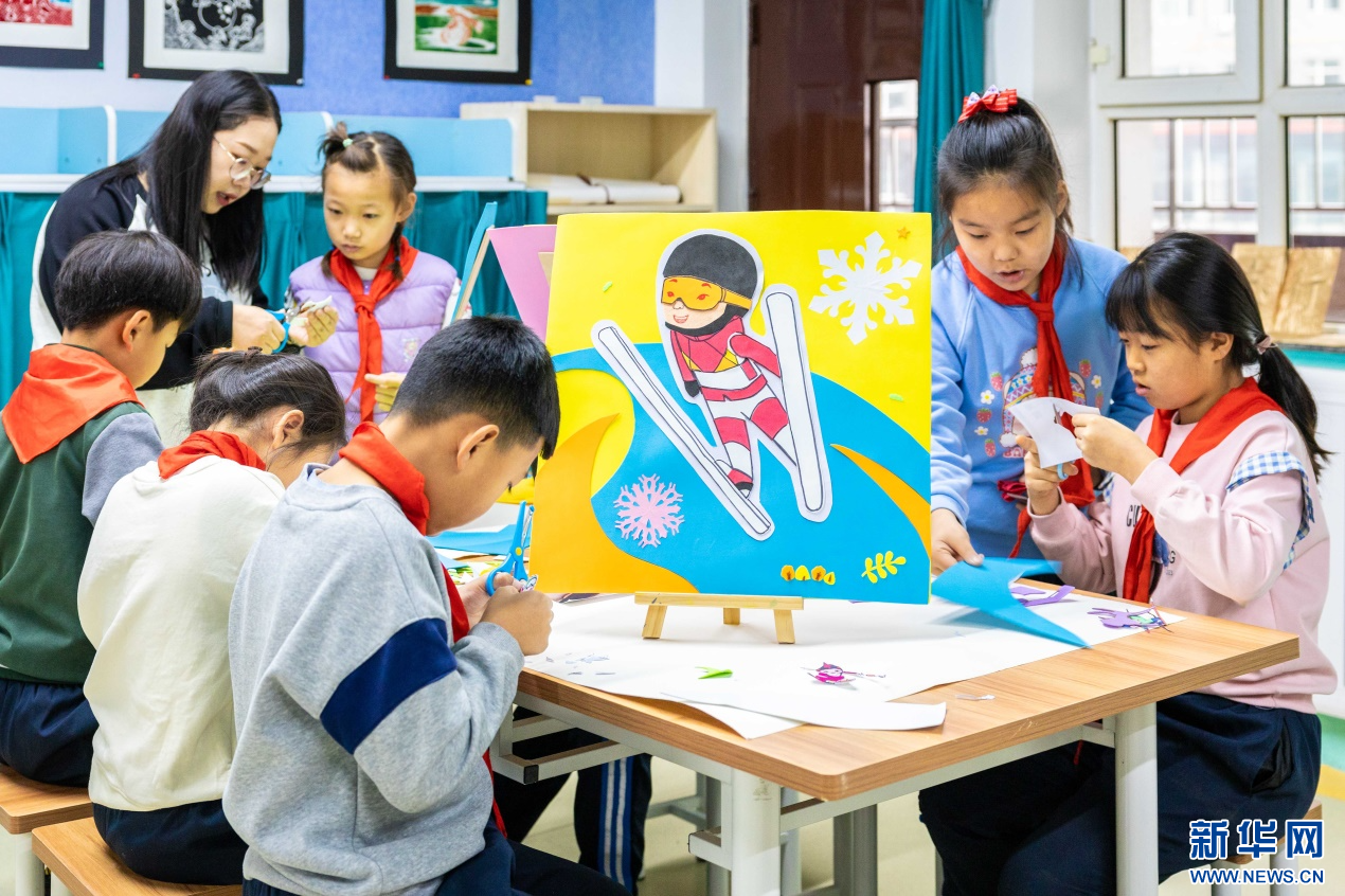 当日,内蒙古自治区呼和浩特市玉泉区小召小学开展“相约十四冬”系列活动。孩子们在老师带领下,共同绘制第十四届全国冬季运动会(简称“十四冬”)吉祥物——“安达”和“赛努”,并制作冰雪运动形象的手工创意作品,表达了全体师生对“十四冬”的期盼和祝福。