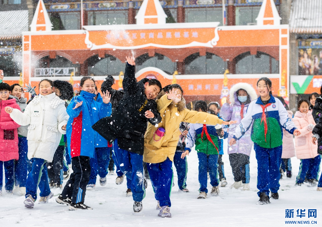 12月14日,游客在内蒙古自治区呼和浩特市玉泉区塞上老街文化旅游休闲街区打雪仗。新华网发(丁根厚 摄)