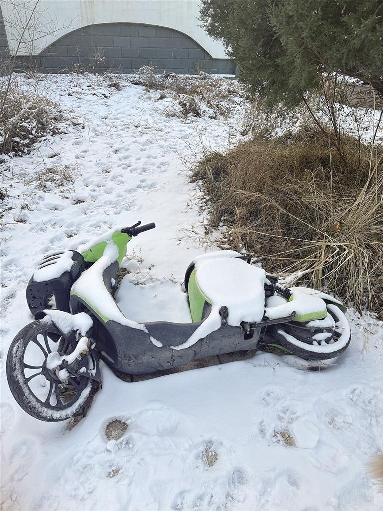 近日,市民石女士向呼和浩特晚报记者反映,东苑小区北侧院内有几辆共享单车被人为破坏后丢弃在院内,全是“缺胳膊少腿”的。12月15日,呼和浩特晚报记者来到该小区发现,小区北侧的空地上,长满了杂草,而在杂草和积雪的下面,躺着几辆已不能使用的共享车辆。