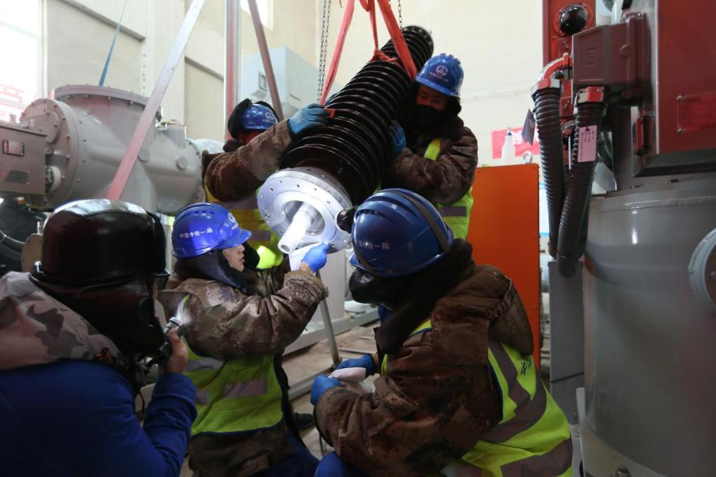 冬日时节,在内蒙古呼和浩特市新机场项目110千伏变电所内,工程技术人员正加紧安装气体绝缘设备及10千伏开关柜母线排。