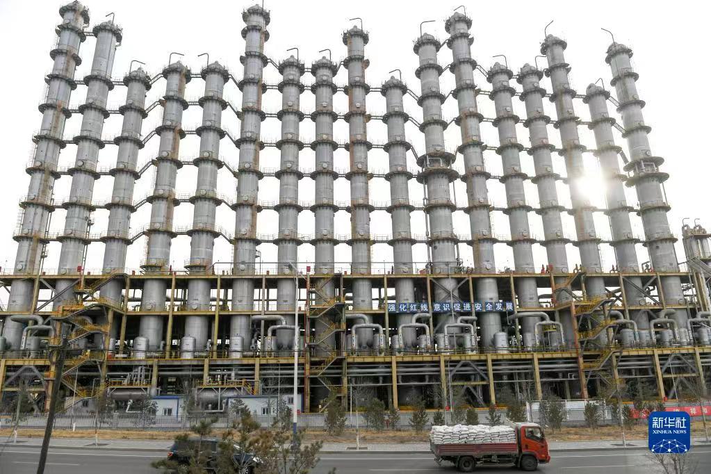 内蒙古自治区包头市一家高纯晶硅有限公司的精馏塔。新华社记者 贝赫 摄