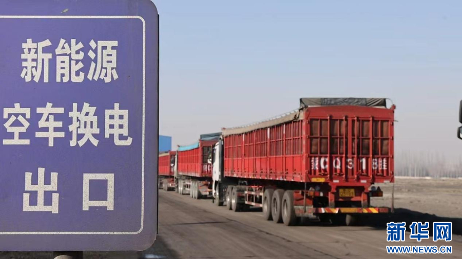 新能源重卡在充换电后,排队驶离。新能源车辆的运行对海勃湾区大气污染治理工作起到了实质性推动作用,新能源重卡代替燃油燃气重卡的推广也向前迈进一大步。新华网发(董嘉言 摄)