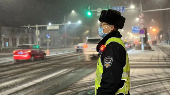 1月19日,大雪侵袭了整座包头城,持续降雪导致路面湿滑,风雪中民警们冒着严寒在各重点路段、街道疏导交通预防减少道路交通事故的发生保证车辆和行人安全,成为照亮黑夜的一抹靓丽“警”色。