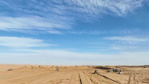 图为内蒙古华电腾格里能源基地100万千瓦光伏先导工程施工现场。