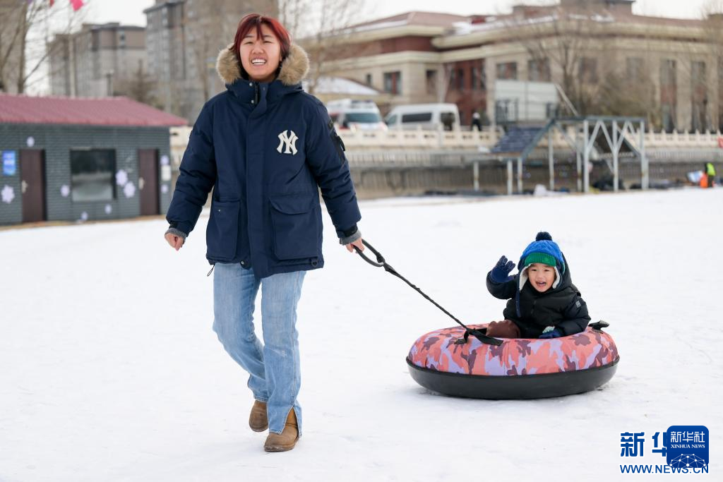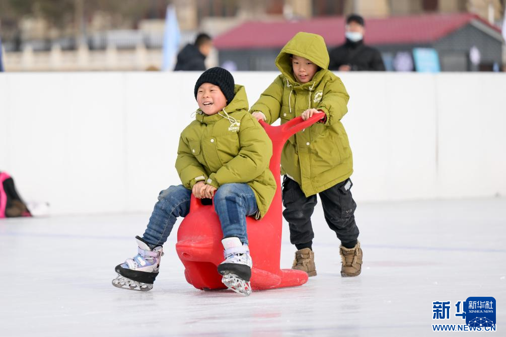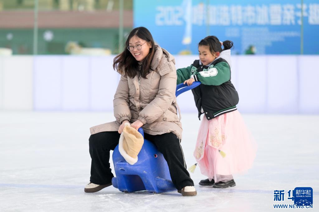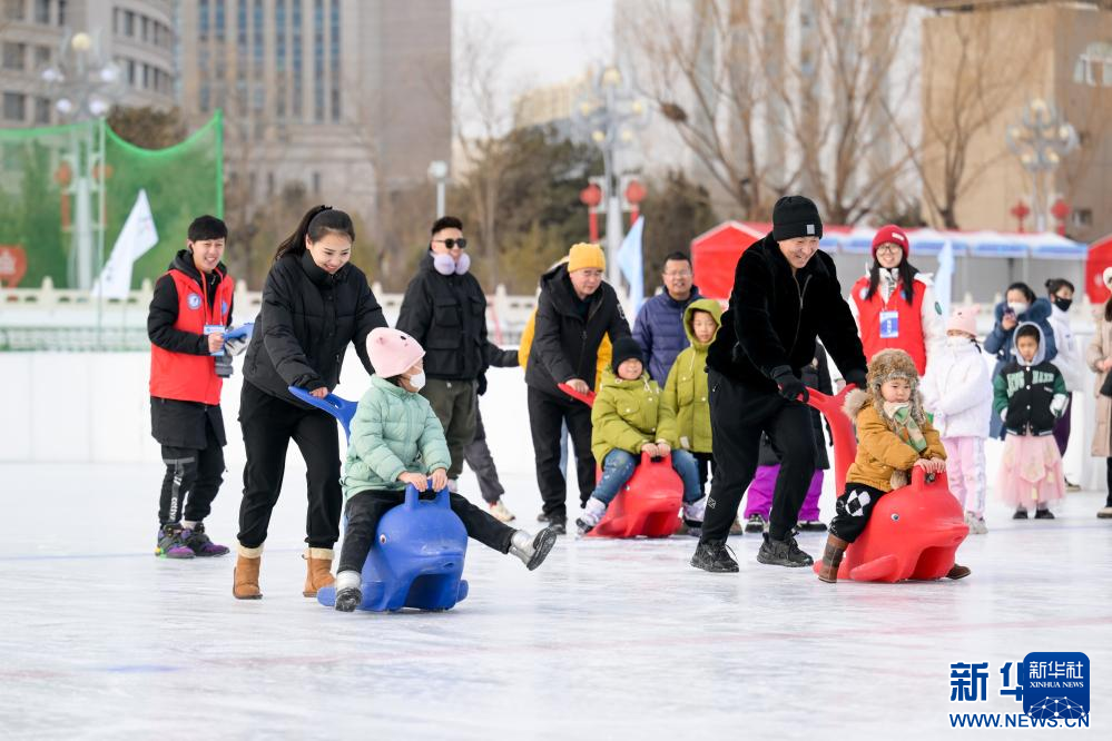 当日,2024呼和浩特市冰雪亲子趣味运动会在内蒙古呼和浩特市东河冰场举办,小朋友与家长参与趣味项目,畅享冰雪乐趣。