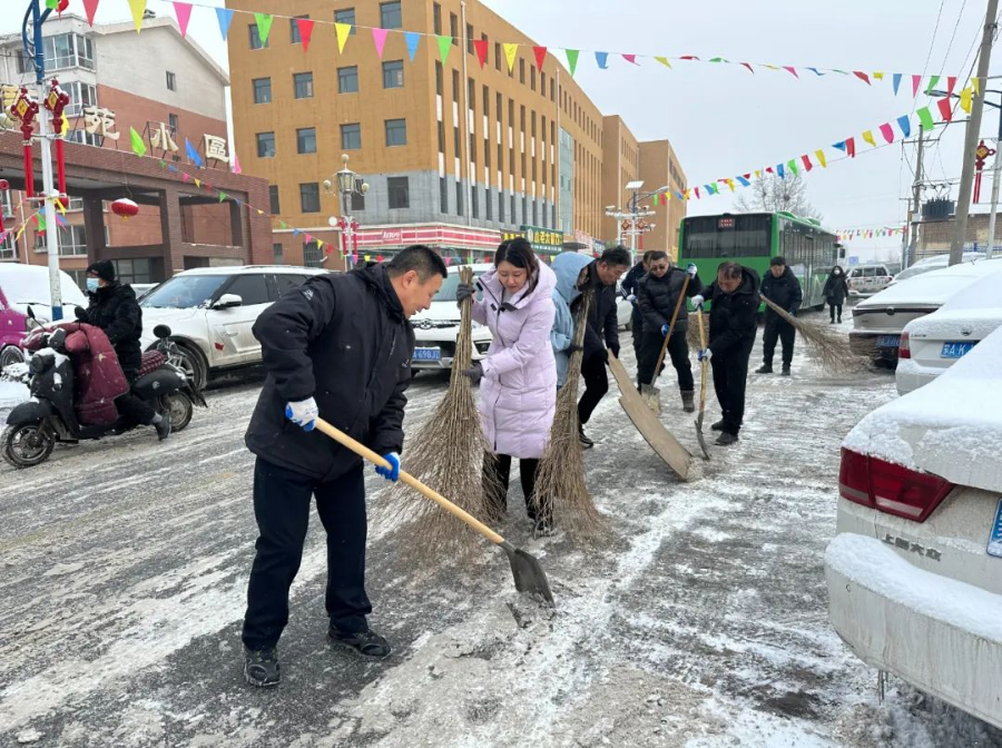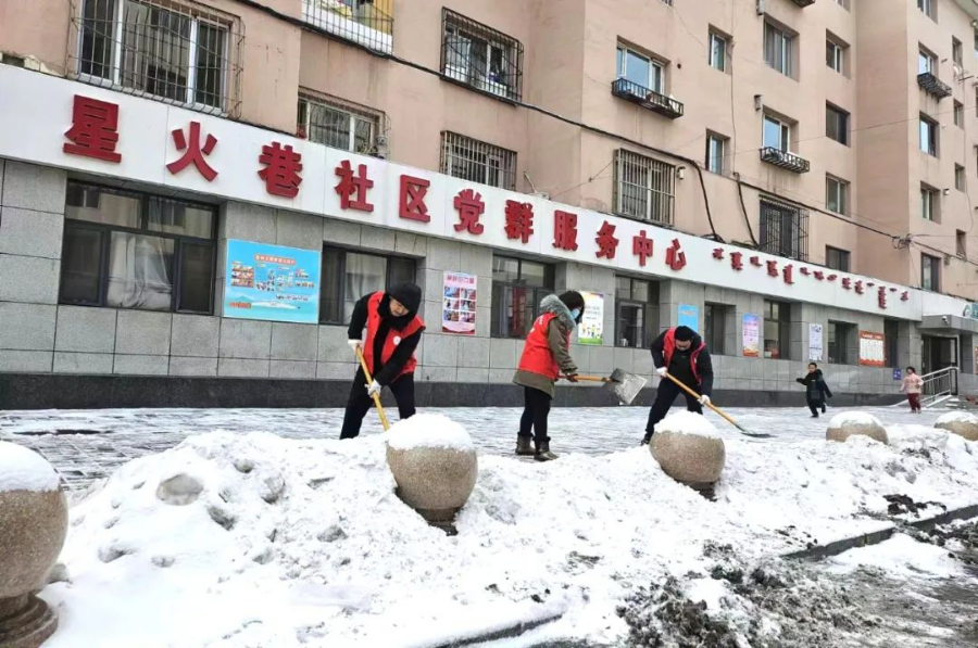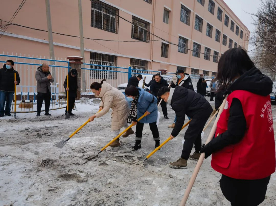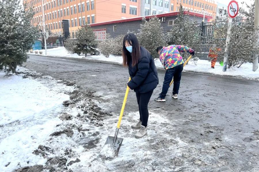清雪除冰,全民参与。持续不断的降雪,为冰雪清理工作增加了不少难度,在全区动员中,许多居民也自发地参与到这场清雪除冰保畅通的行动中来。沿街商户落实“门前三包”责任主动加入“清雪大军”,自发清扫门前范围内的积雪;部分社区居民早早地赶来社区报到,领取清扫工具后在小区各楼栋间居民必经之处清理出一条条便道,为提升市容市貌贡献一份力量。