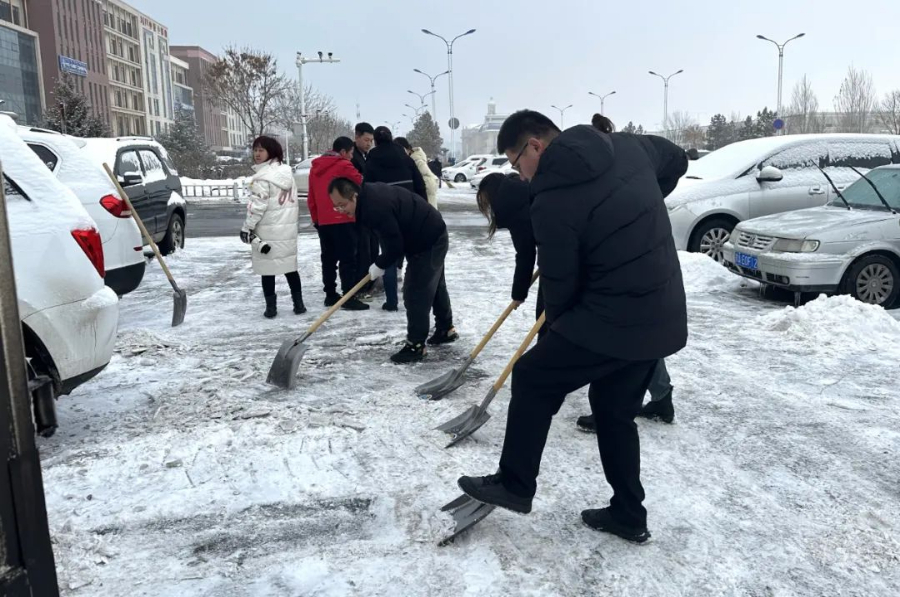 2月5日清晨,新城区组织各机关和企事业单位工作人员走进包联街道社区,第一时间投入到清雪除冰工作中。他们手拿铁锹、铁铲、扫帚等清扫工具,挥锹、铲雪、扫雪,分工有序,协调配合,努力将积雪一点点清理干净。尽管天气寒冷,但丝毫没有影响到大家的热情,在一片白茫茫中清理出一条条便民通道,为寒冷的冬天增添了一丝暖意。