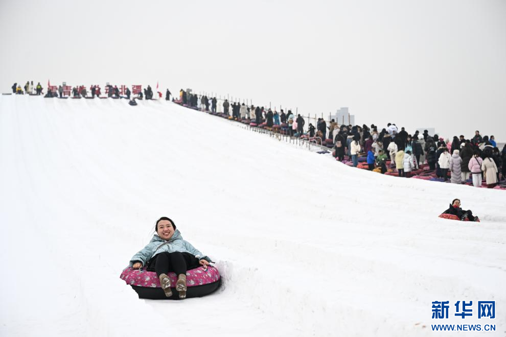 图为1月18日,市民在内蒙古赛马场滑雪圈。新华社记者 贝赫 摄