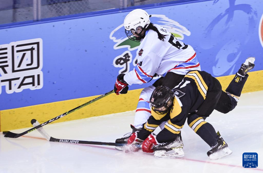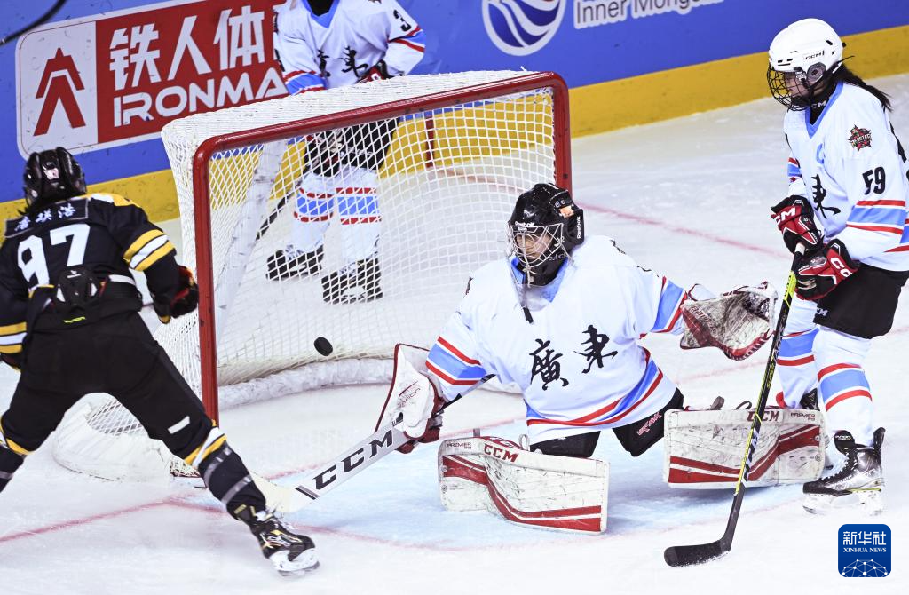 当日,在内蒙古冰上运动训练中心冰球馆举行的第十四届全国冬季运动会冰球项目女子青年组小组循环赛B组比赛中,辽宁队3比2战胜广东队。