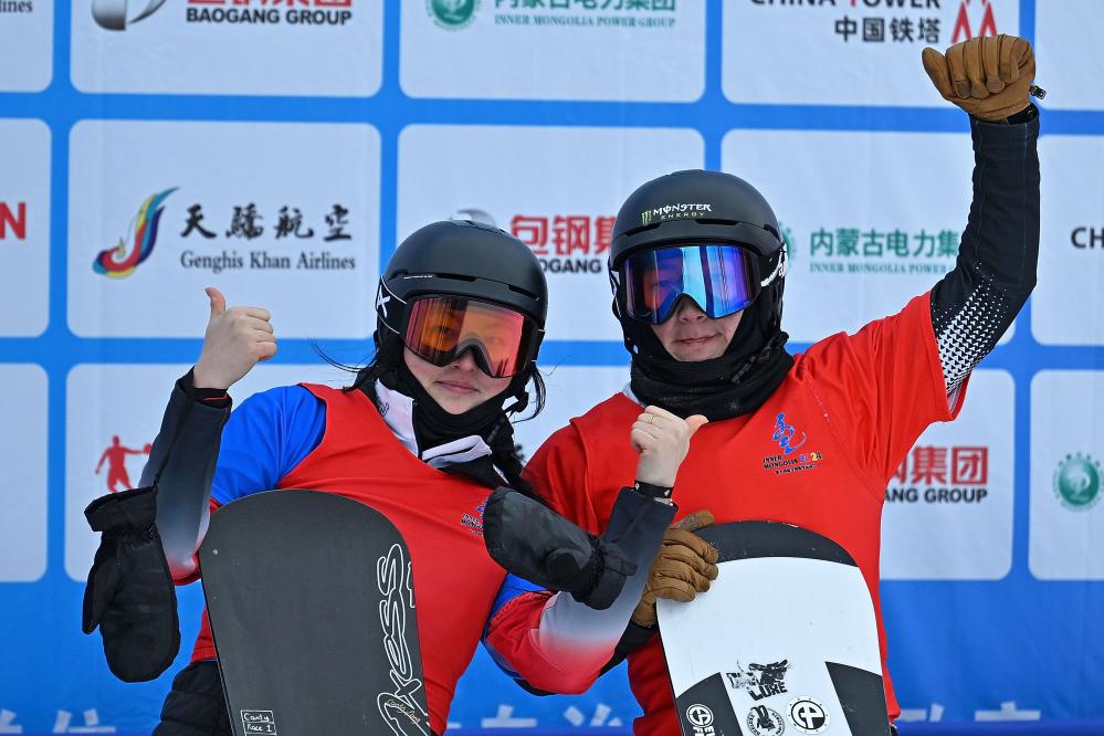 在单板滑雪公开组障碍追逐混合团体决赛中,渴望胜利的逄储源搭档叶康佳在赛道上灵活穿梭,从容应对各种障碍。“个人比赛中我是第二名,有些不甘心,今天我站到了最高领奖台上,弥补了错失金牌的遗憾。”逄储源赛后表示。
