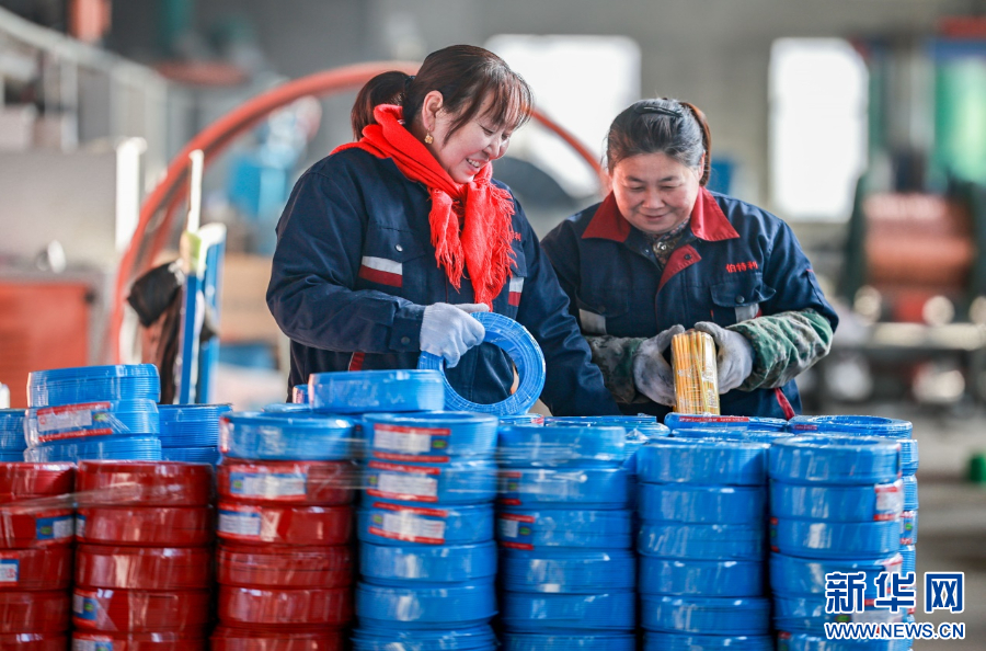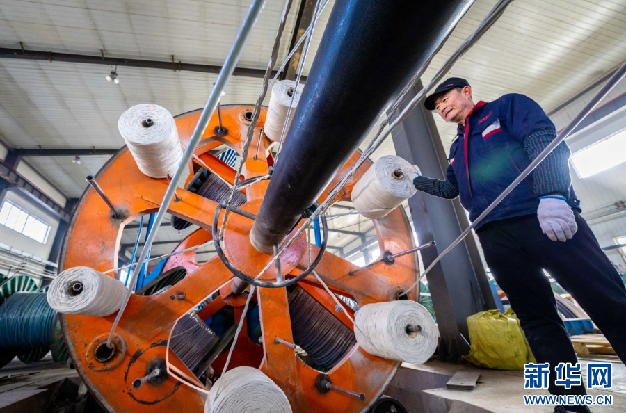 3月1日,工人在赶制特种线缆订单产品。新华网发(丁根厚 摄)