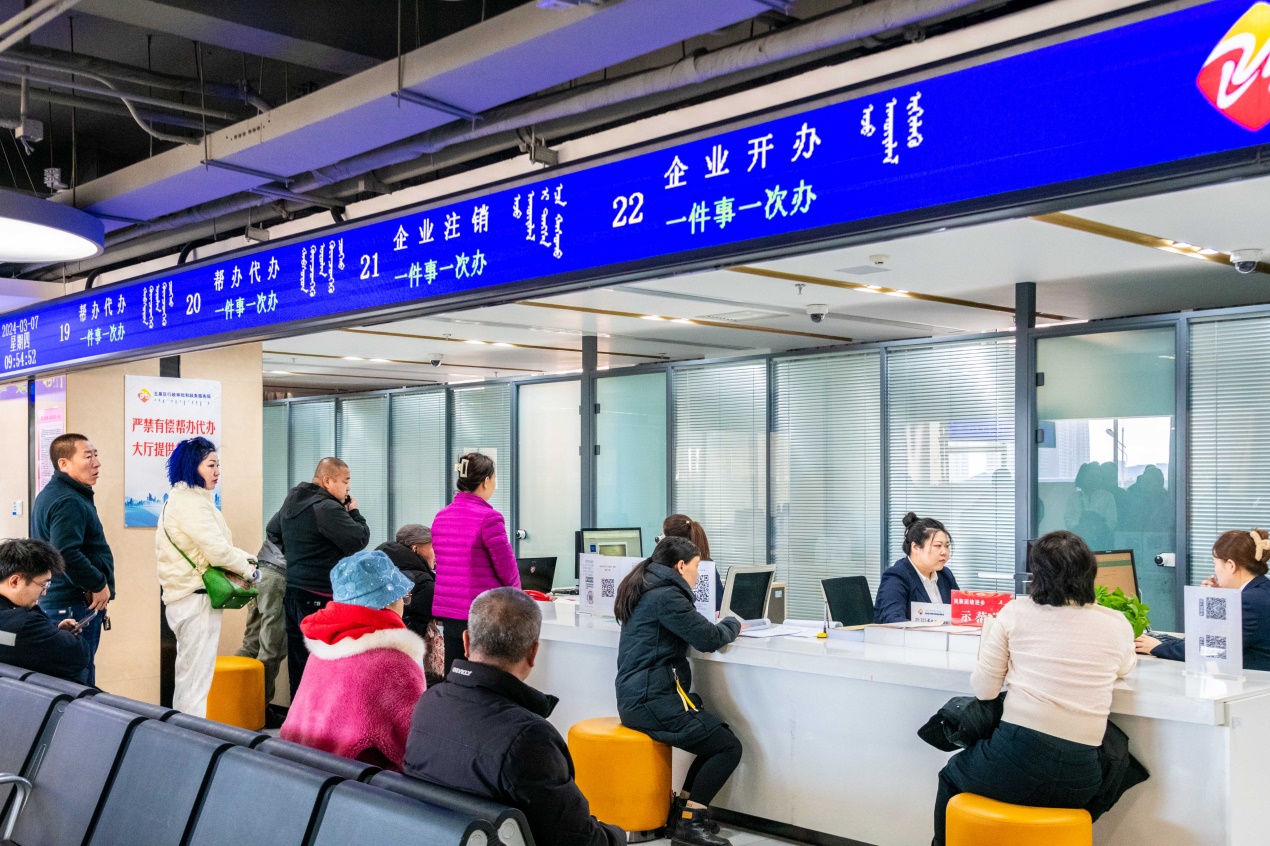 3月7日,人们在呼和浩特市玉泉区政务服务大厅“帮办代办服务台”办理业务。新华网发(丁根厚 摄)