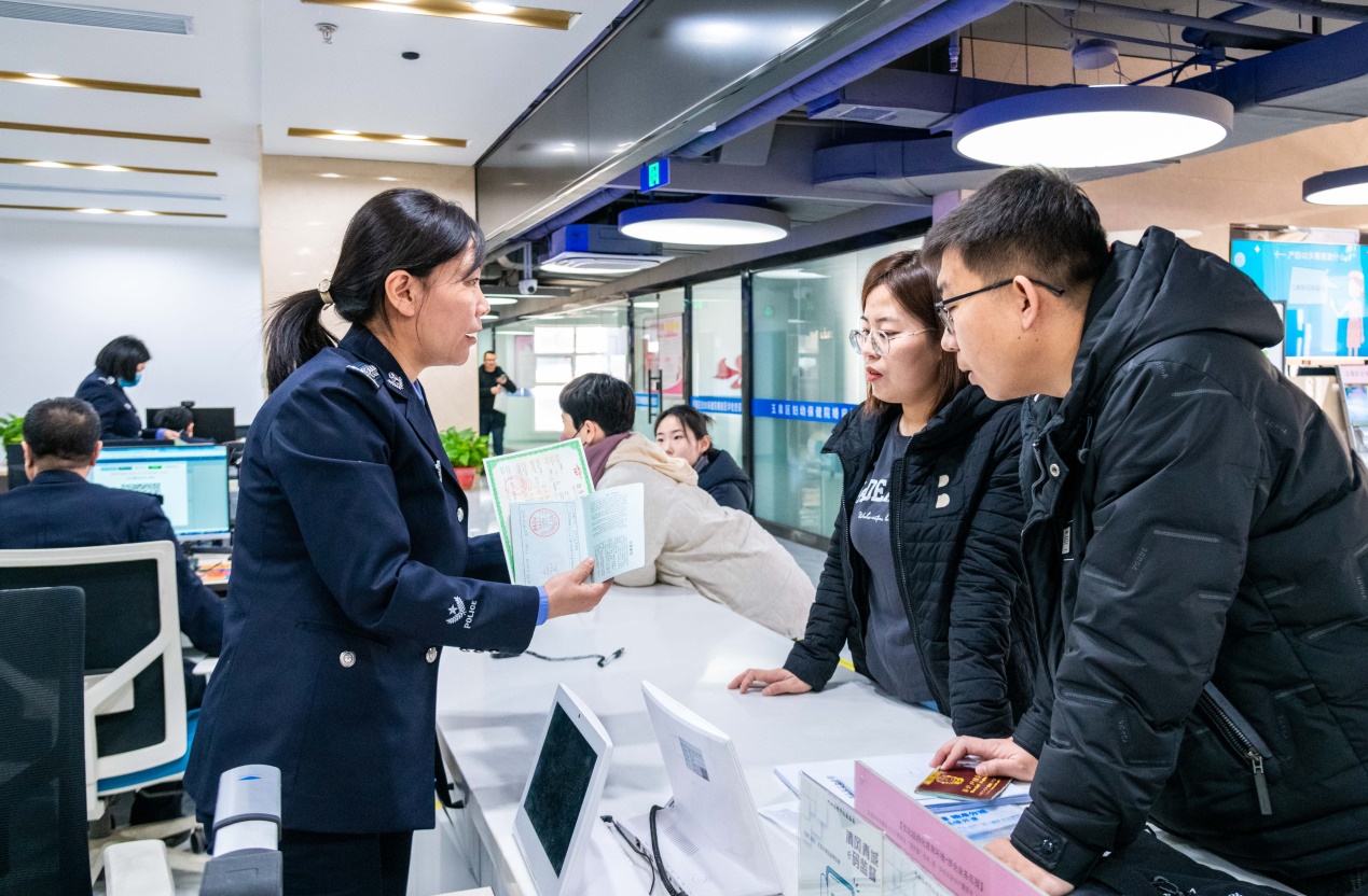 3月7日,户政员在呼和浩特市玉泉区政务服务大厅公安综合窗口为群众办理户口迁移手续。新华网发(丁根厚 摄)
