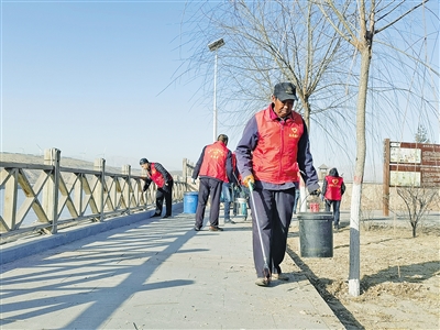 志愿者捡拾垃圾。