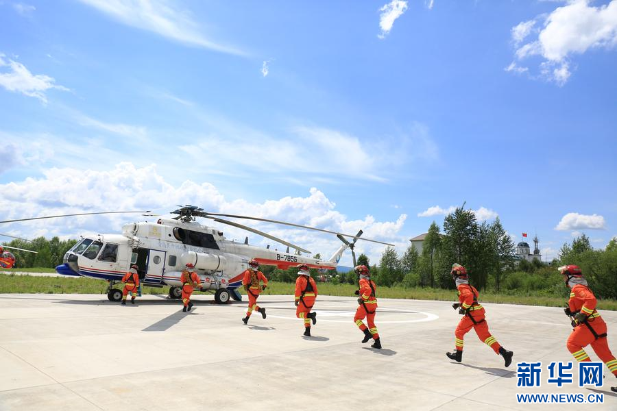 内蒙古大兴安岭航空护林局航空特勤突击队登机执行任务(2022年7月25日摄)。新华社发