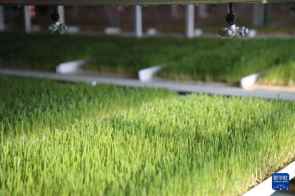 生产车间负责人汪嘉琦介绍,这里采用全智能植物工厂模式,集成智能育苗、智能环境、数字土壤、垂直栽培、饲料自动生产等系统,仅7天就可将谷物变成新鲜牧草饲料,周期产量可达12吨至15吨左右,实现一年四季不间断生产,有效保障了当地优质饲草料供应。“通过智慧化生产的牧草营养丰富,不仅提高了牛羊消化和抗病能力,其肉质也能得到提升,能帮助农牧民卖上好价钱。”汪嘉琦说。