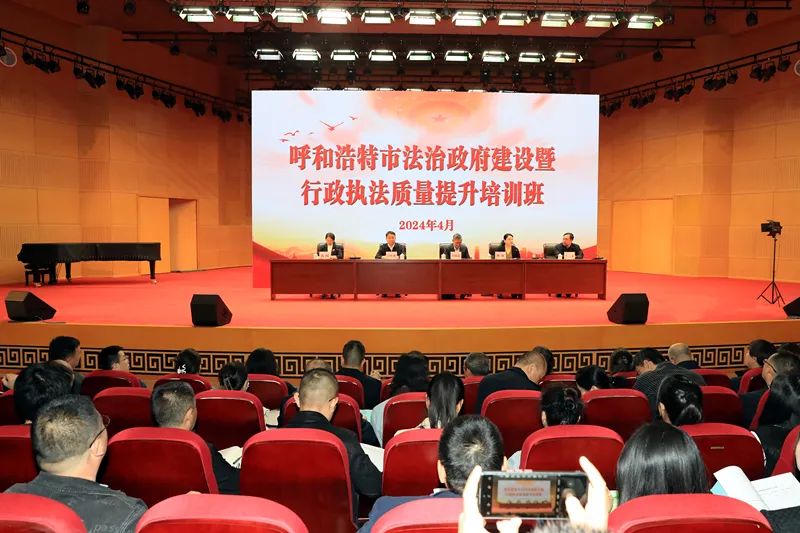 为进一步优化法治化营商环境,不断提升依法行政水平和能力,扎实推进呼和浩特法治政府建设。2024年4月26日-27日,呼和浩特市司法局根据国务院办公厅《提升行政执法质量三年行动计划》的要求,举办了法治政府建设暨行政执法质量提升培训班。呼和浩特市司法局党组书记、局长何妍出席会议并致辞。两天的培训全市行政执法人员2200余人次参加线下培训,9000余名机关干部同步在线学习。