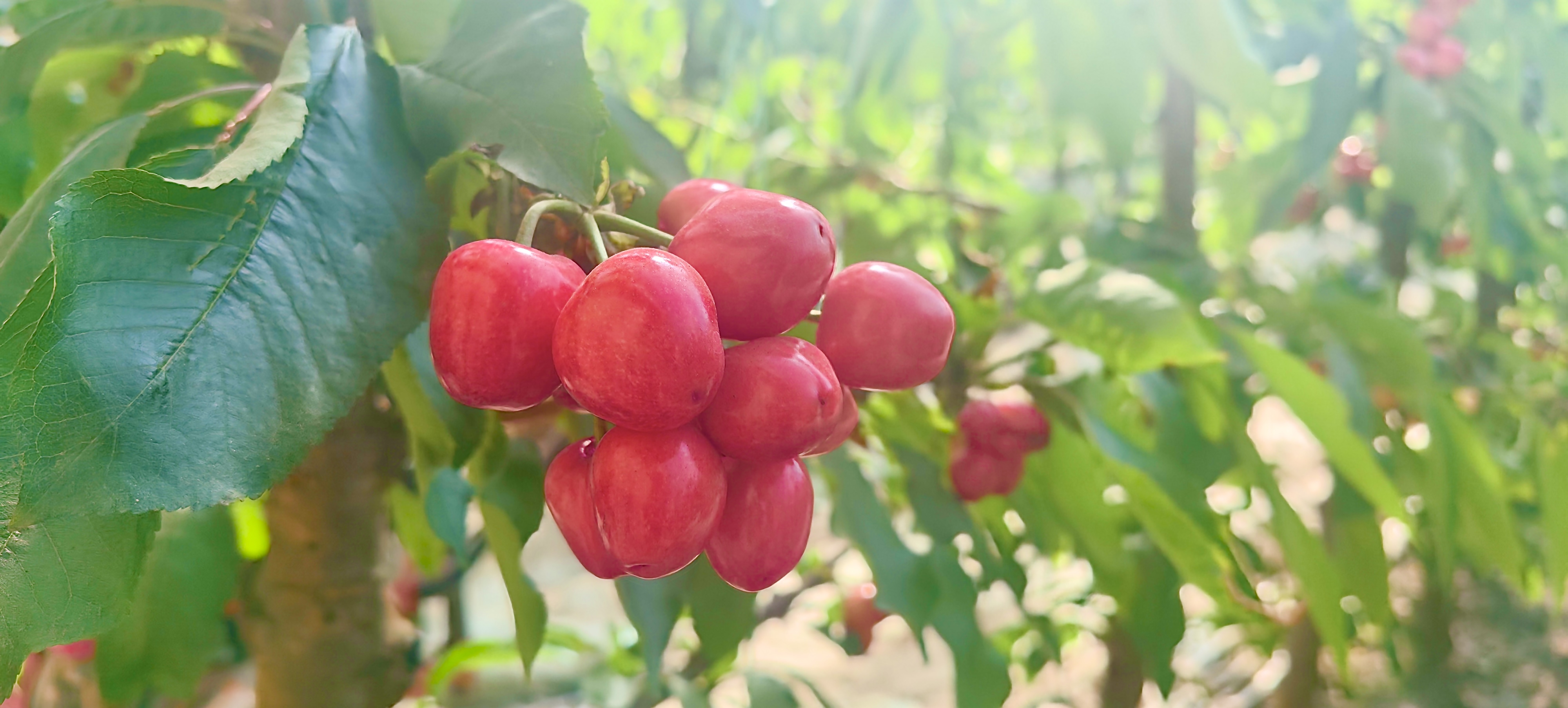 包头市东河区沙尔沁镇大棚里的红樱桃挂满枝头。新华网发(吕必得摄)