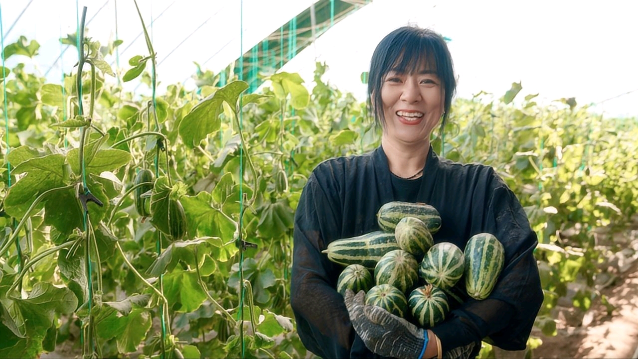 包头市东河区沙尔沁镇“博洋9号”香瓜丰收,农户笑开颜。新华网发(陈文诚摄)