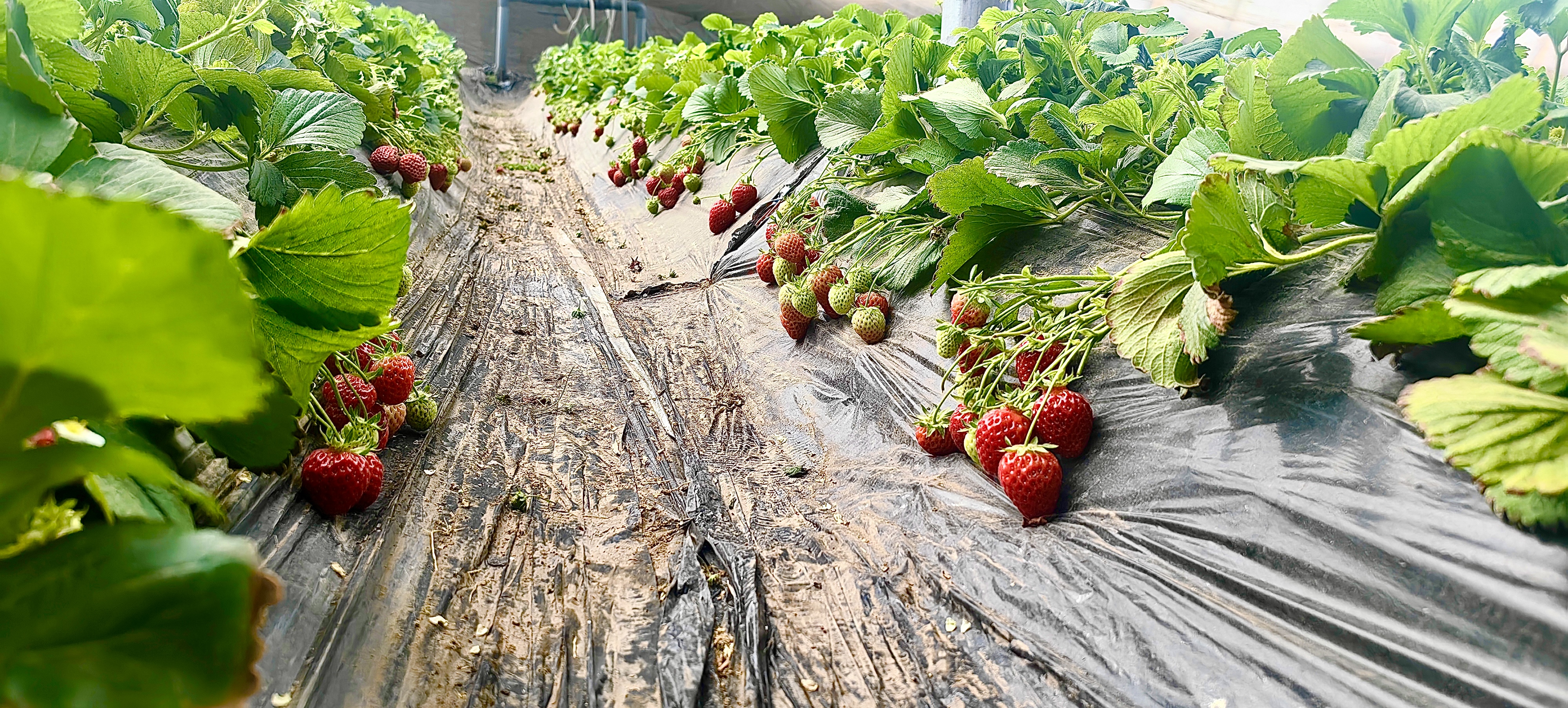 包头市东河区沙尔沁镇大棚里的草莓进入成熟季。新华网发(吕必得摄)