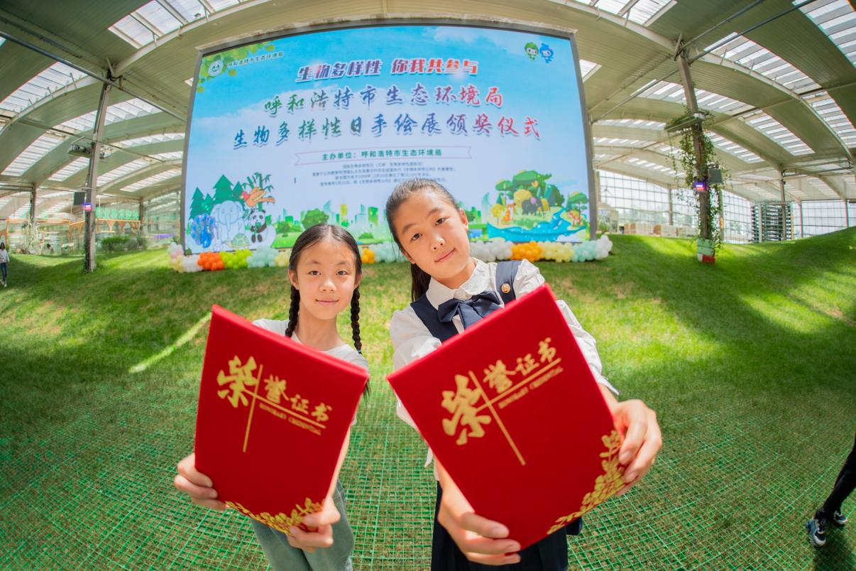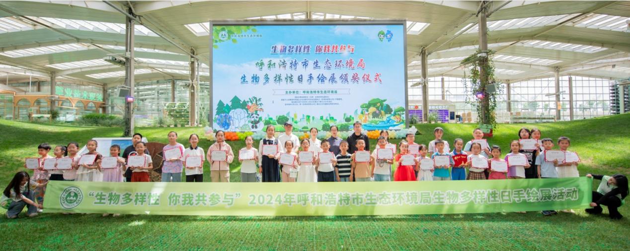 为宣传2024年全国生物多样性日,5月19日,呼和浩特市生态环境局在蒙草草博园举行“生物多样性 你我共参与”为主题的手绘展颁奖仪式,来自各中小学的艺术爱好者及其家长共同参加。