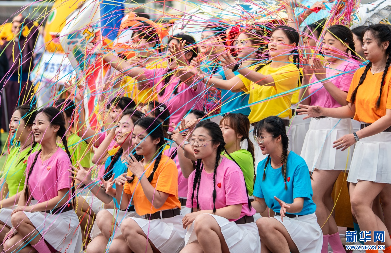 5月30日,呼和浩特民族学院学生在那达慕文化节开幕式上表演节目。新华网发(丁根厚 摄)