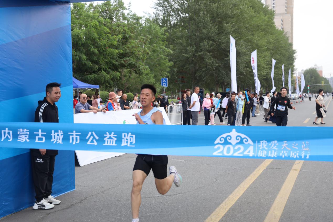第三届内蒙古城市公益跑巴彦淖尔站的跑步爱好者冲过终点。新华网发