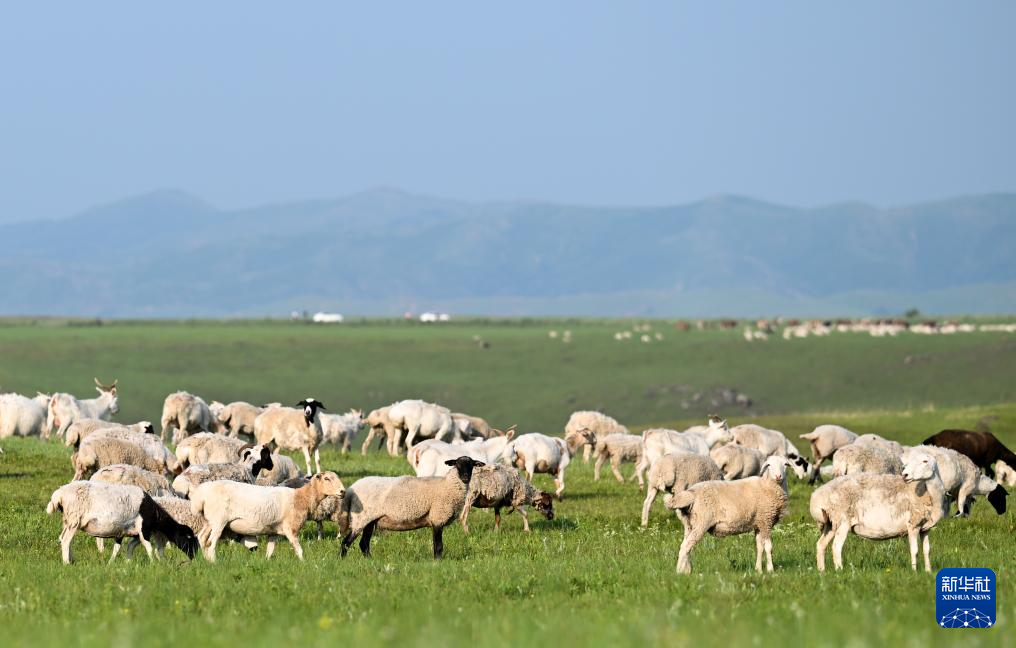 7月18日拍摄的乌兰毛都草原上的羊群。