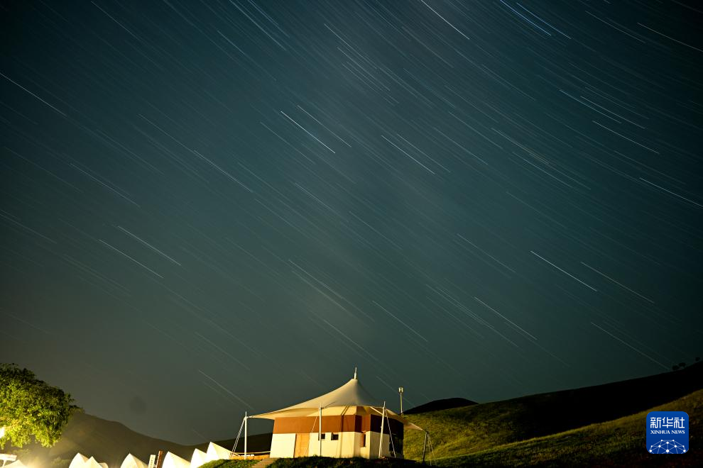 7月19日在乌兰毛都草原上的帐篷客营地拍摄的星空(长时间曝光照片)。