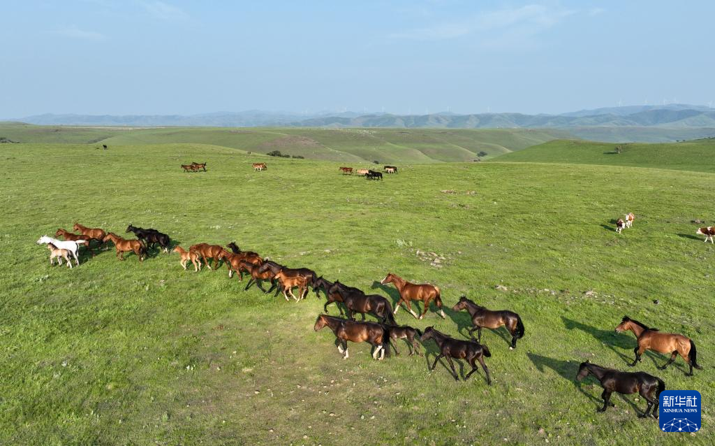 7月18日拍摄的乌兰毛都草原上的马群(无人机照片)。