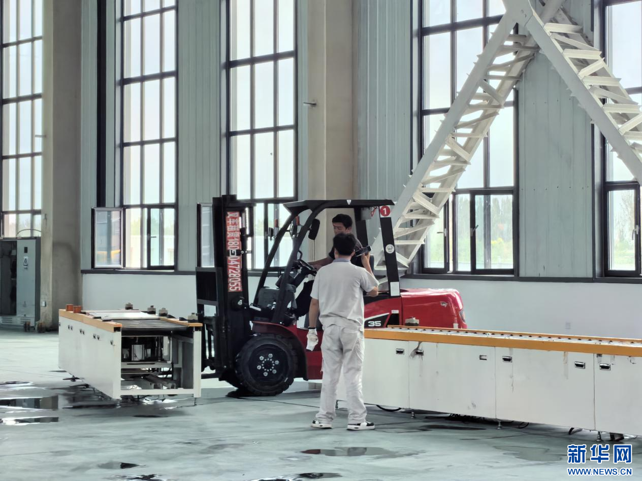 8月6日,包头稀土永磁电机产业园内的厂房里,一家企业的技术人员正在安装设备。新华网郝芳芳 摄