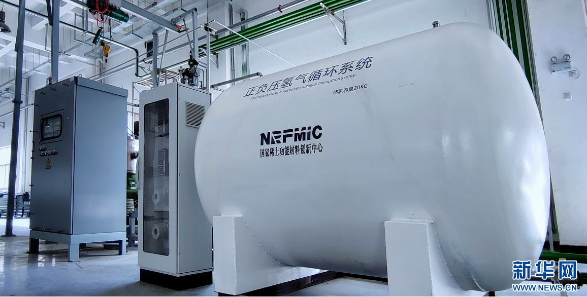 在包头稀土高新区一家磁材公司生产车间,一套能容纳20公斤氢气的稀土固态储氢装置格外显眼。企业技术人员介绍,钕铁硼破碎需要使用氢气,传统的技术流程中氢碎后的余气被废弃,使用这套装置进行洁净后可回收氢气并储存起来循环使用,气体回收率大约90%。
