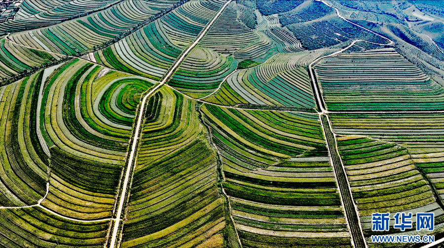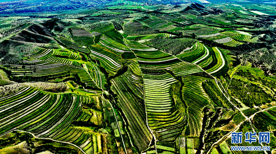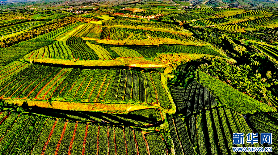 8月15日,在赤峰市敖汉旗萨力巴乡三十二连山拍摄的谷子及杂粮田。新华网发(李富 摄)