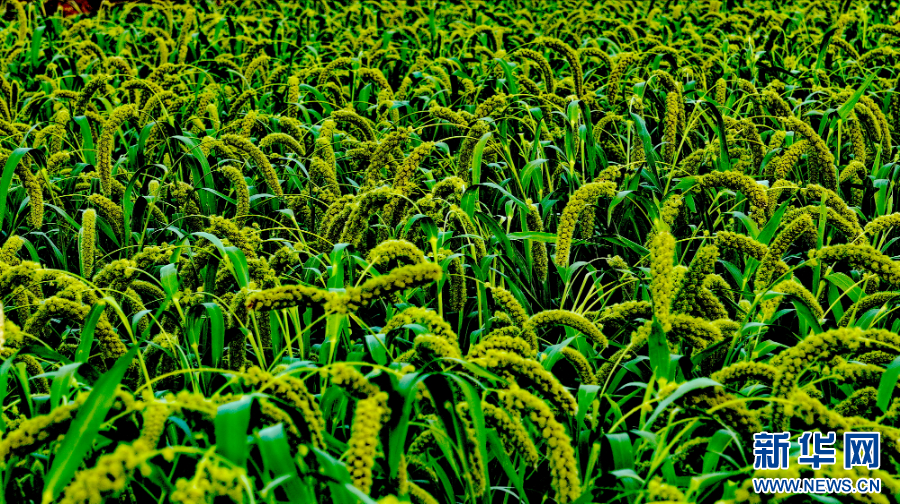 8月15日,在赤峰市松山区王府镇拍摄的谷子及杂粮田。新华网发(李富 摄)