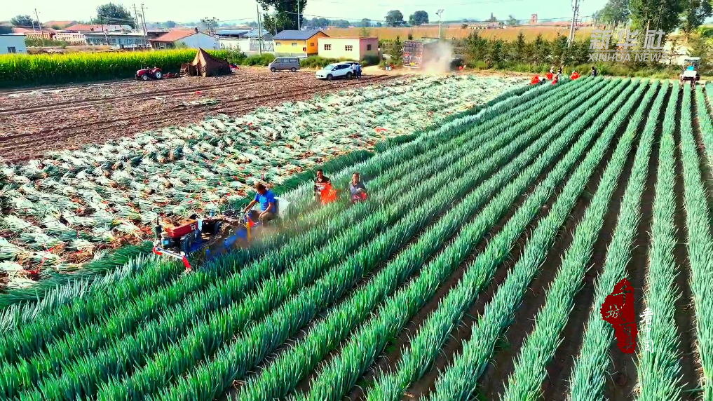 金秋时节,走进内蒙古自治区呼和浩特市赛罕区金河镇八拜村,成片的大葱油亮饱满,浓郁的葱香扑鼻而来。两台自动化起葱机轮番作业,工人们忙着捆葱、搬运、装车……田间地头一派繁忙的丰收景象。