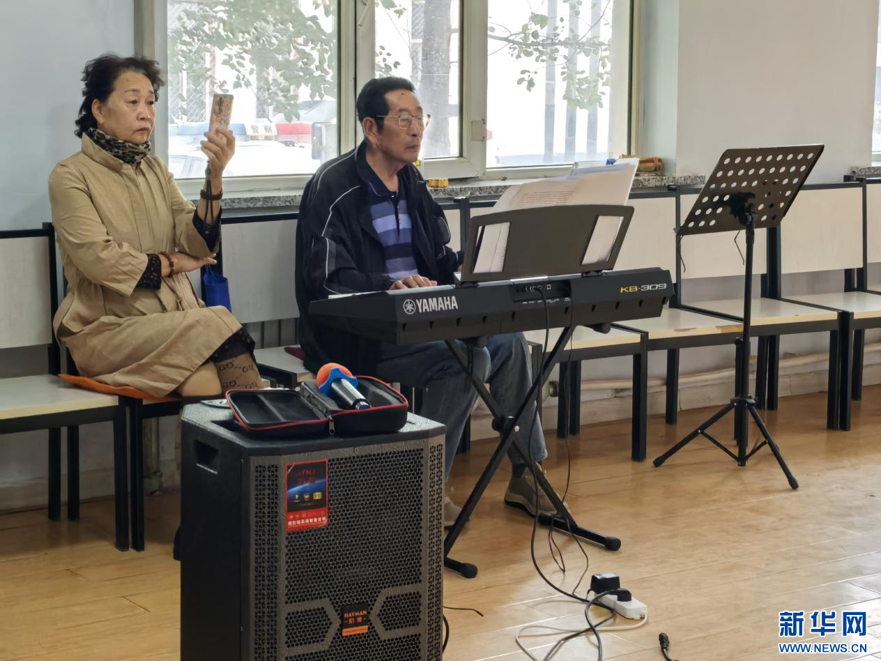 9月11日,几位老人在乌兰察布市集宁区桥西街道综合养老服务中心排练节目。新华网郝芳芳 摄