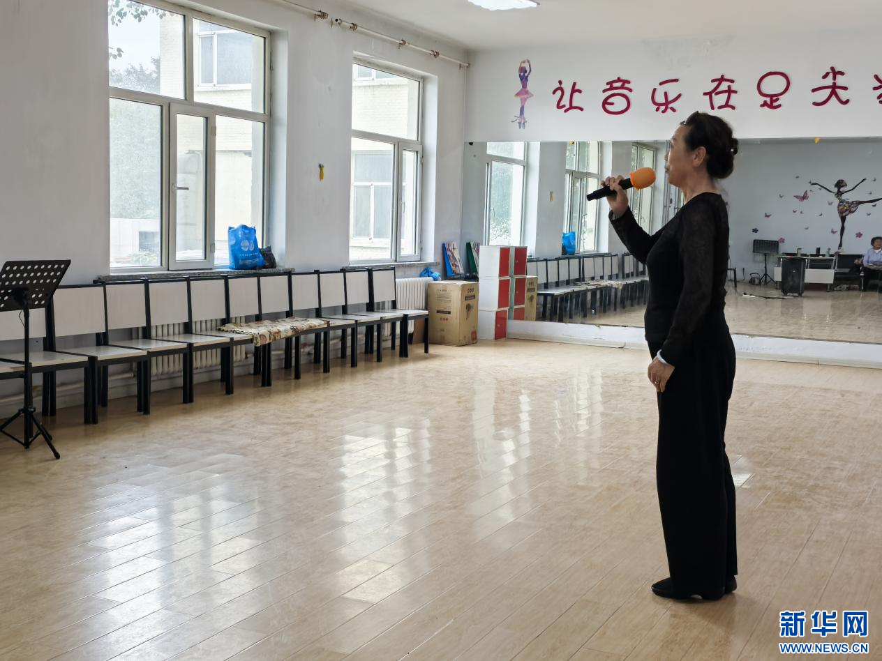 9月11日,一位老人在乌兰察布市集宁区桥西街道综合养老服务中心排练节目。新华网郝芳芳 摄