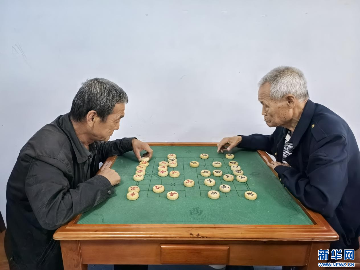 9月11日,两位老人在乌兰察布市集宁区桥西街道综合养老服务中心下棋。新华网郝芳芳 摄