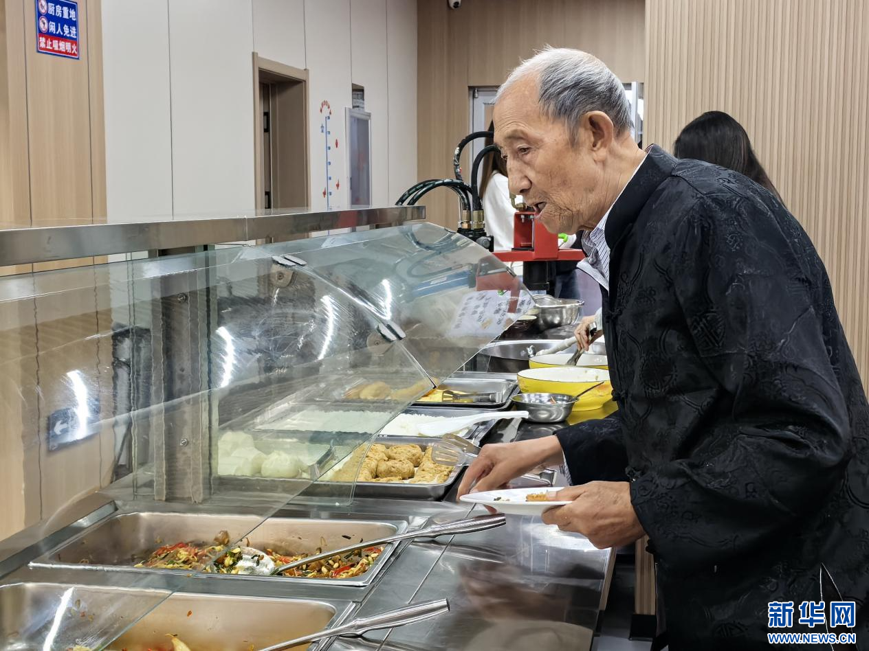 9月11日,一位老人在乌兰察布市集宁区泉山街道为老惠民餐厅挑选饭菜。新华网郝芳芳 摄